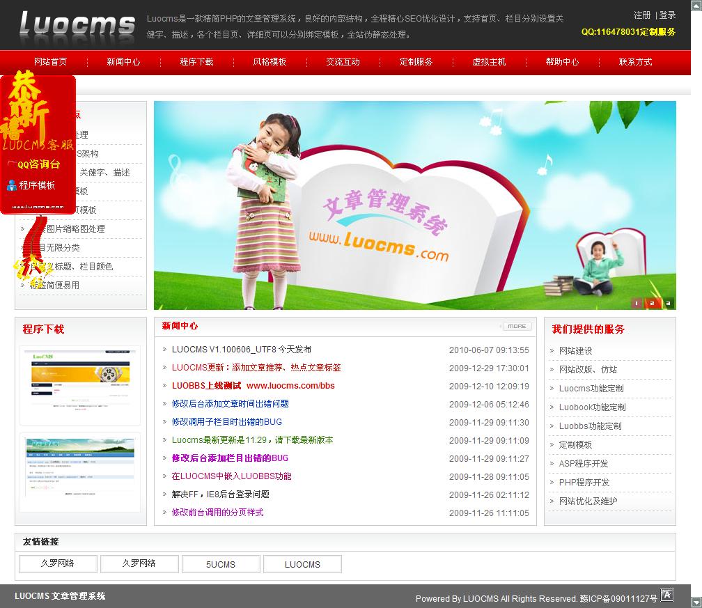 LUOCMS是一款基于PHP+MYSQL的文章管理系统,简洁易用,全程DIV+CSS架构,整站HTML化,良好的内部结构,更适合网站优化推广。