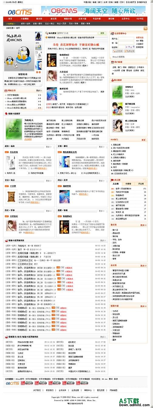 08CMS小说系统模型完全由08CMS空白系统利用模板功能,制作出来的应用模型,