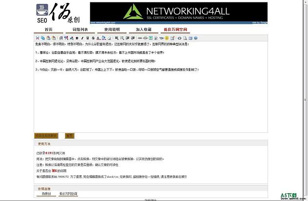 下面该说说,我这个伪原创工具了。本程序是免费的在线伪原创工具,原理就是同义词替换。