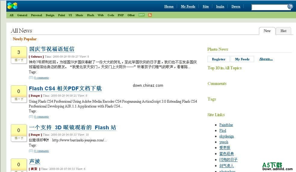 4.支持站点和时间分类,Tags浏览,单独页面浏览,并运用了ajax技术