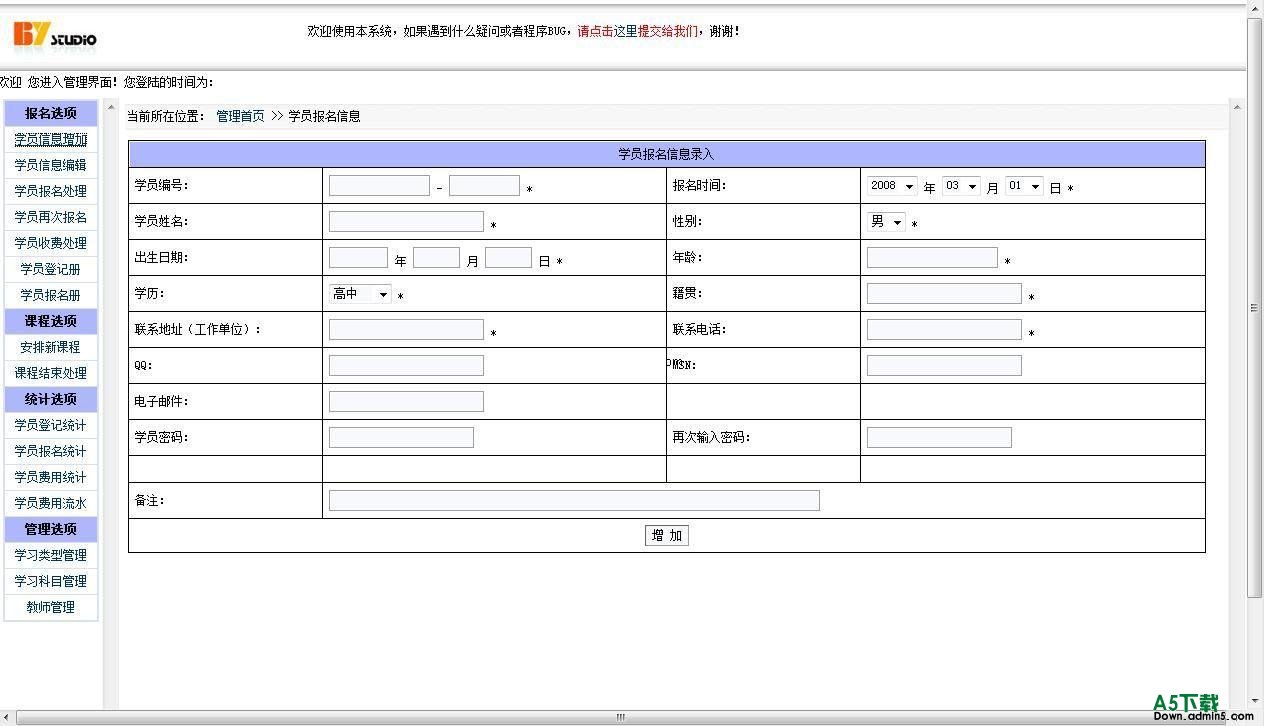 培训学校管理系统适合于目前的一般培训学校,比如英语、计算机、少儿培训中心等小型培训机构。本系统原本是针对计算机培训所设计。