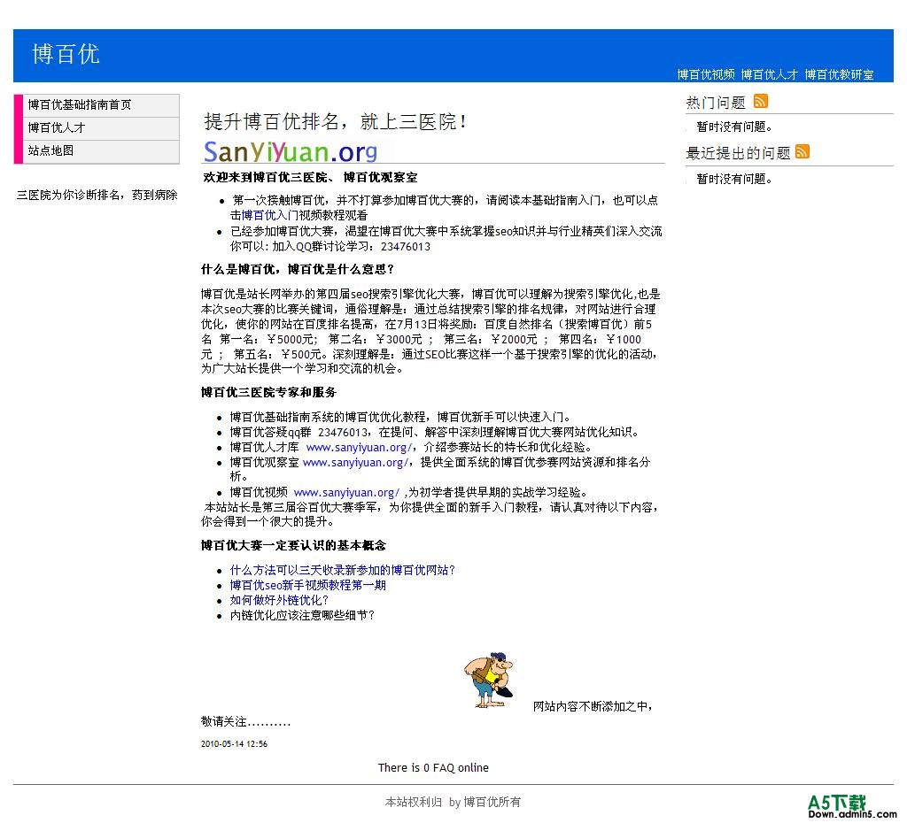 相信很多朋友都不知道seowhy使用的是什么程序, 其实seowhy使用的是国外一个非常流行的phpfaq问答程序。 参加博百优大赛,我为了使用一个问答程序就高仿了seowhy的模板。 因为seowhy使用的是phpfaq低级版本的模板,所以称不上侵权。