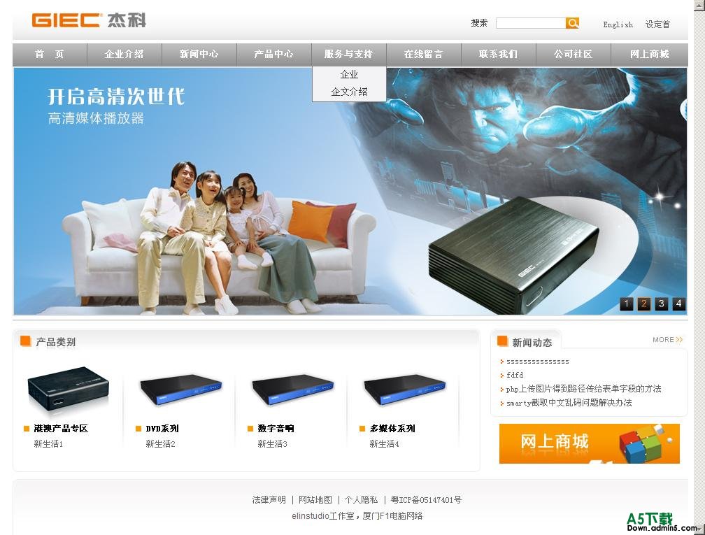 本产品,以PHP+MYSQL+smarty开发的企业网站,可供大家学习交流。 后台地址为admin/login.php 账号、密码都为admin mysql需自己导入没有写安装程序!