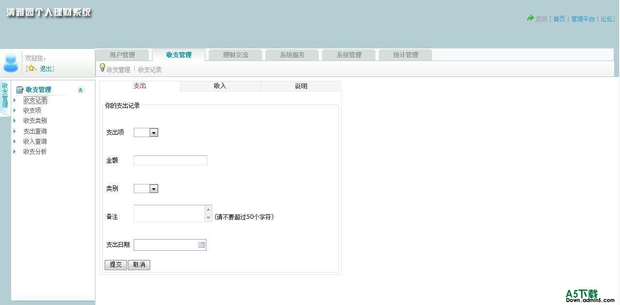 本程序是武汉社区网写给 小区用户的免费理财软件。现在只是一个简单雏形, 包括了 一系列简单的理财信息。采用PHP+MYSQL。 大家在安装的时候,先修改config.php和manage/conn/conn.php的配置文件。 然后点 install.php进行安装就是。 管理员名为 cs 登入EMALL为 cs@qq.com 密码为 123456 注:部分功能缺失