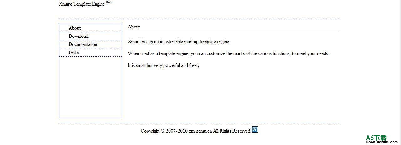 Xmark是一个通用的可扩展标记模板引擎。 当作为一个模板引擎使用,您可以自定义各种功能的标志,以满足您的需求。 它虽小,但非常强大和自由。