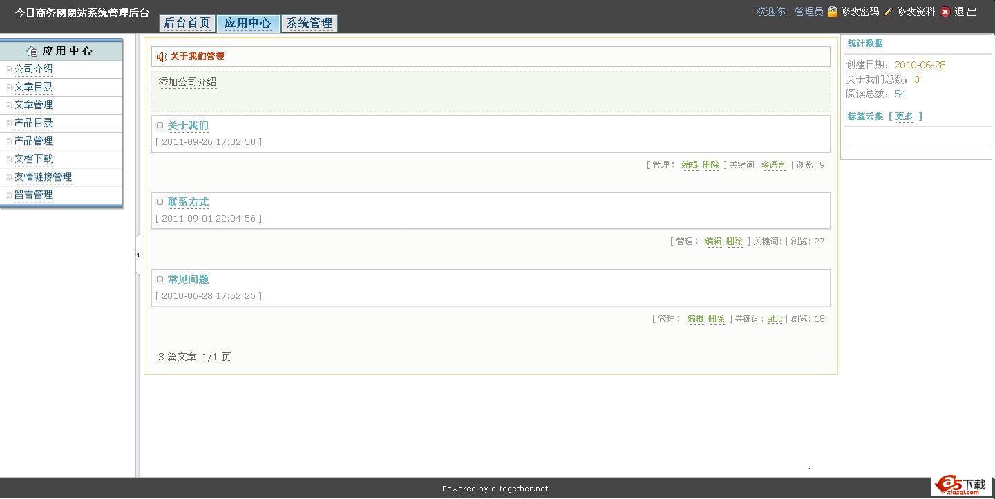 企业网站系统的升级版本eetoday 现能智能化安装且带有小型论坛的企业网站系统,其具有的功能包括:在线聊天,成功案例,公司新闻, 公司产品(公司产品目录可无限级扩展), 公司活动, 行业文章, 企业招聘, 资料下载, 公司论坛,MVC的购物车功能,其用了smarty模板,而且集成了淘宝的即时结算功能,产品搜索功能,及后台管理及添加次级目录功能。且全部可以在后台进行管理。