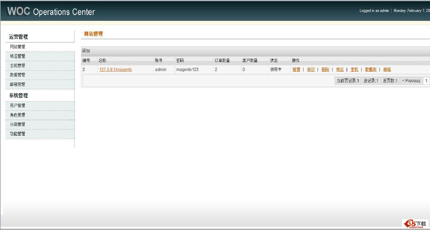 WOC是rschome.com基于zend framework1.6框架结合smarty模板引擎所开发的一款开源简易站群管理系统。它允许进行网站管理、主机管理、域名管理、数据库管理、邮箱管理以及用户管理、角色管理、权限管理等一系列功能,适合中小企业进行站群管理。目前版本为V1.2,新版本正在开发中,同时欢迎大家参与到开发中来!