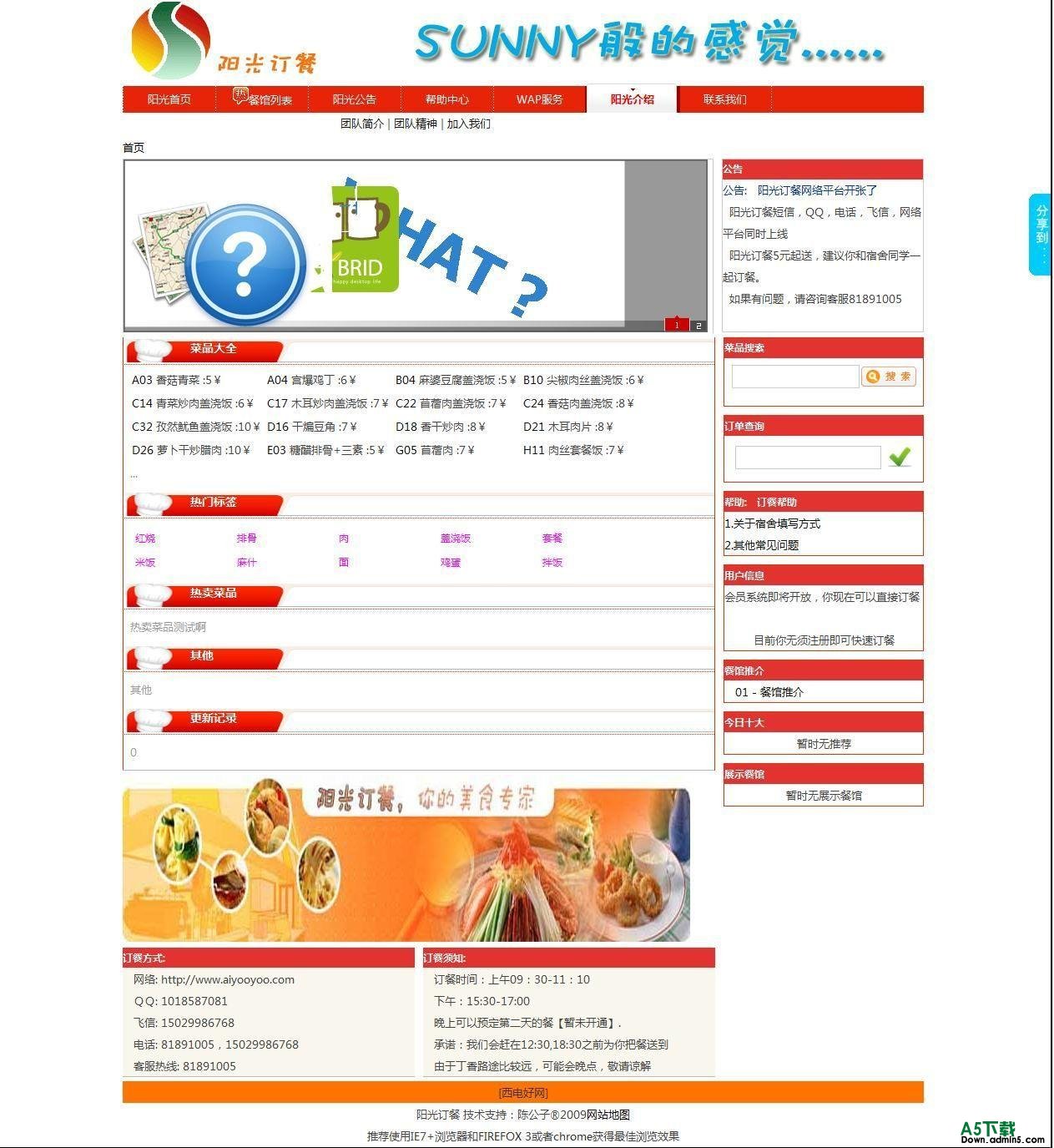 欢迎使用阳光订餐系统,本系统使用PHP5+MYSQL开发而成,距离上一个版本1.2.8发布已经有一年了。