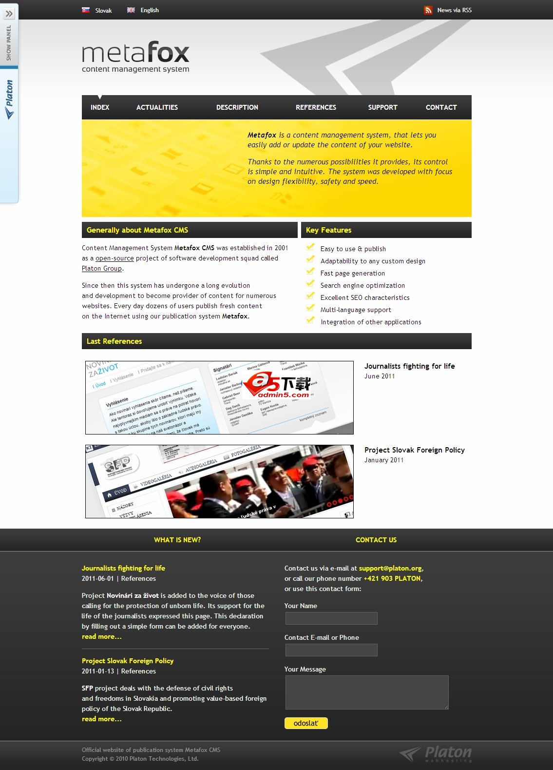 Metafox 是一个企业内容管理系统,使用一个特别的模板系统,你可通过一些特定的设计和代码来轻松创建 Web 网站,内容存储在 SQL 关系数据库,通过 Web 进行管理,简单、快速而且高效。 Metafox 0.9.1 发布,该版本改用一种更棒的 URL 风格,实现了 RSS 源(可包含远端网站内容到 Metafox 段中),重定向老的访问密钥到新的密钥,增加 RotateAntispam 技术。