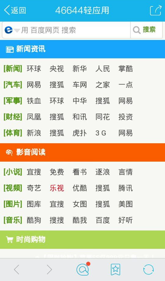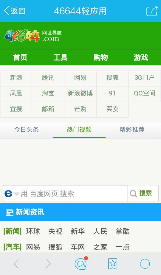 简单、清爽的手机网址导航源码。 占用空间小,功能齐全,绿色风格。 包含新闻、汽车、军事、财经、体育、笑话、实用工具、游戏等栏目。 Tags: 手机网址导航 网址导航手机版