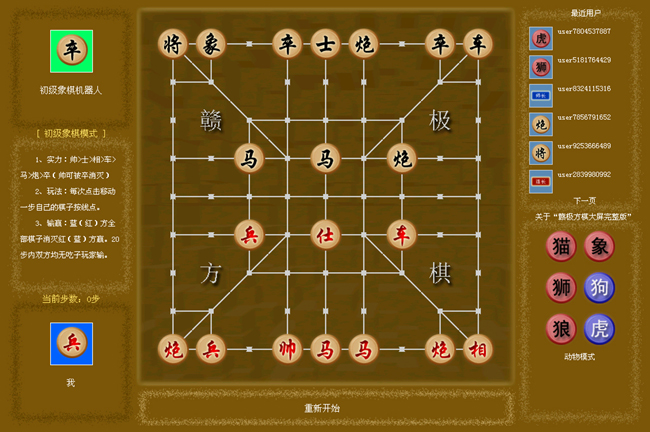赣极方棋大屏完整版更适合1024*768以上分辨率设备浏览。象棋模式,军旗模式,动物模式,自定义模式均可设置。体验象棋,军旗的另类玩法。