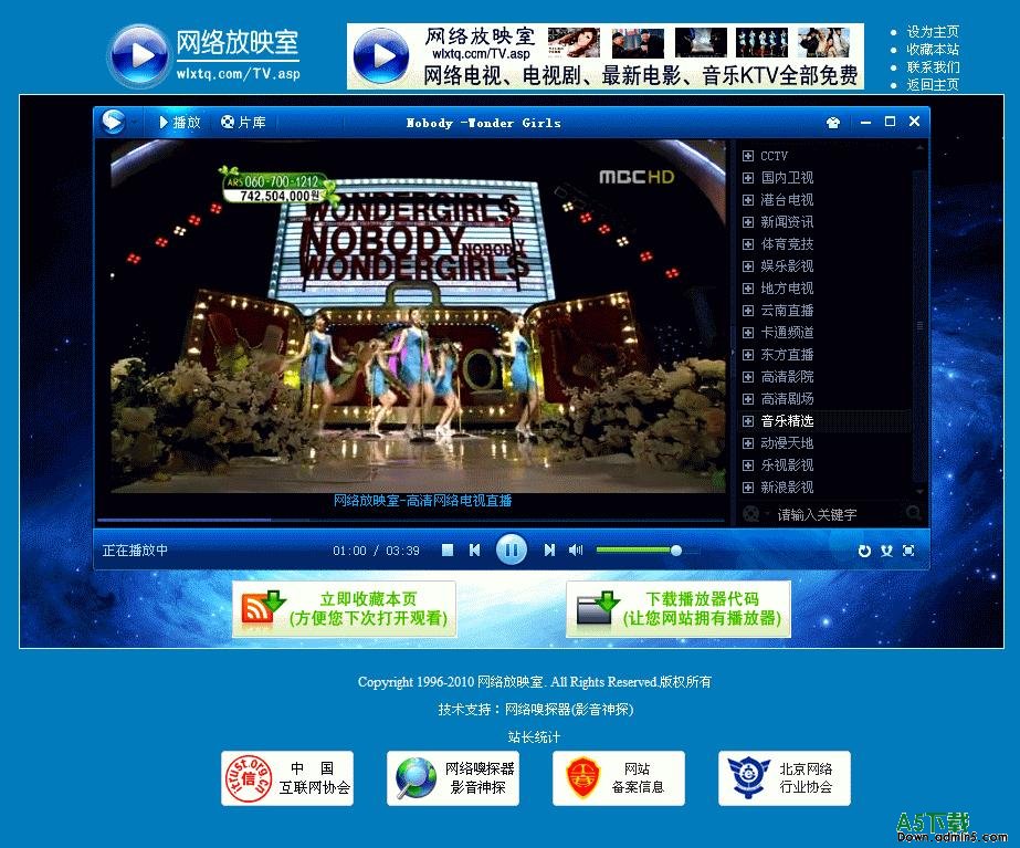 网络放映室是基于网络FLASH开发的网络播放器,功能强大,比普通网络电视更 流畅、更清晰,而且十分方便,无需安装任何插件,打开网页既可实时在线播放 ,让您享受高速的网络电视、电视剧、网络电影、网络歌曲、网络MTV等最新视 频,现在把代码与各位站长一起分享,相信一定能给你的网站带来不少人气,本 程序上传到空间即可使用,代码内均有注释,方便你自己替换相应的广告和信息 。注:本程序又网络嗅探器(影音神探)提供技术支持。