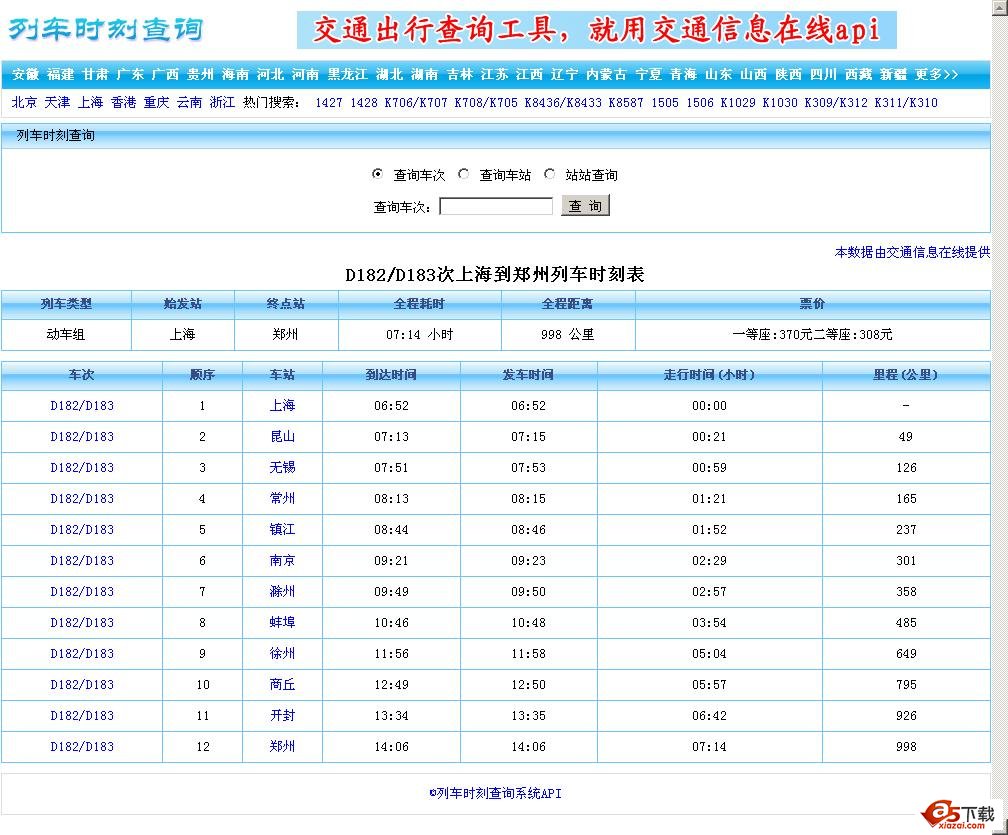 列车时刻查询API可以适合任何网站,包括导航网站、新闻网站、地方网站、政府或企业网站、论坛、博客等等。