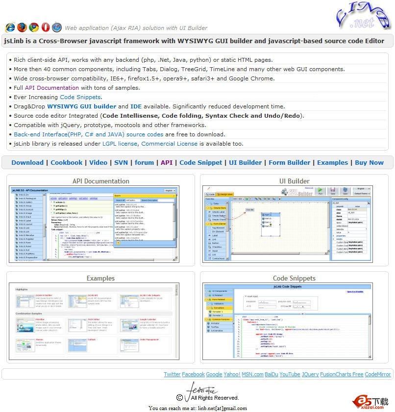 • 多浏览器兼容, 包括IE6+, firefox1.5+, opera9+, safari3+ 和 Google Chrome.