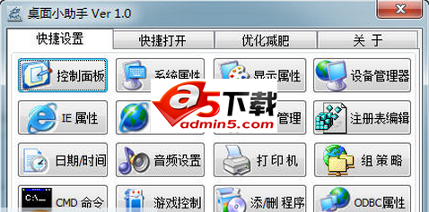 桌面小助手是一款电脑系统小工具,可以实现快速调用电脑内部程序和清理电脑并优化设置两种功能。