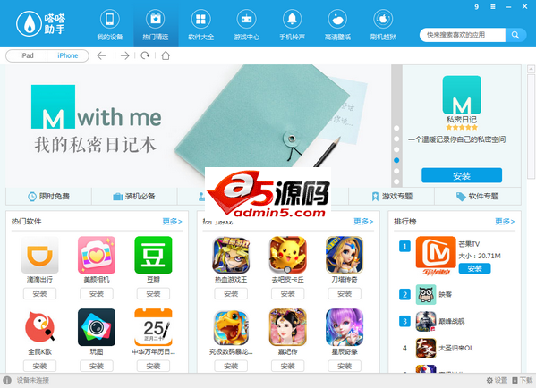 一、无需越狱、无需注册Appstore,勿需跳转iTunes,海量正版应用极速下载,不闪退,速度为Appstore的三倍。