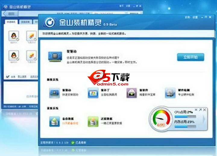 集安装驱动、补丁、软件于一体的装机软件,一站式的贴心服务,为用户带来全新的使用体验;其中装驱动功能采用驱动精灵的核心技术,拥有国内最全的驱动库,能够有效识别硬件设备,精准匹配最适合最稳定的驱动程序。 同时您还可以备份qq聊天记录、我的文档等重要个人数据,避免丢失;随时一键还原已备份的重要数据,使电脑完好如初