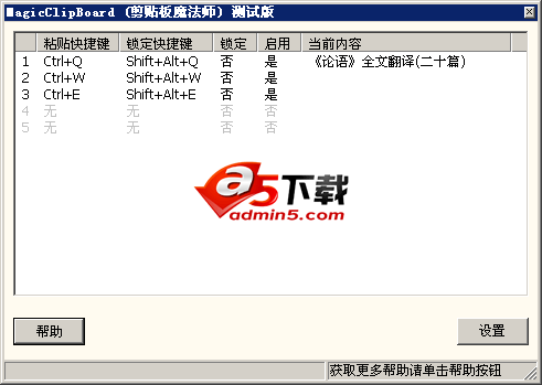 如果因工作需要 ,每天都要重复复制同样的内容,但 windows的剪贴板只能容纳一条记录,却限制了复制/剪贴功能的发挥。magicclipboard 剪贴板魔法师 能帮到你来提高工作效率,同时还支持自定义快捷键。magicclipboard 旨在帮助您能够更加方便快捷地进行日常的学习与工作。