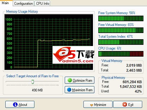 CleanMem(内存优化工具) 内行人都知道所谓的优化电脑内存软件并不起作用,不少适用于Windows 95、Windows 98的内存优化软件只是简单地使用一个小伎俩将电脑内存数据转移到虚拟内存中。虚拟内存也是硬盘空间的一部分。