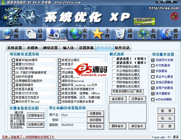 一个按自己多年来安装调整系统做的系统优化软件,差不多一软在手系统事无忧了.