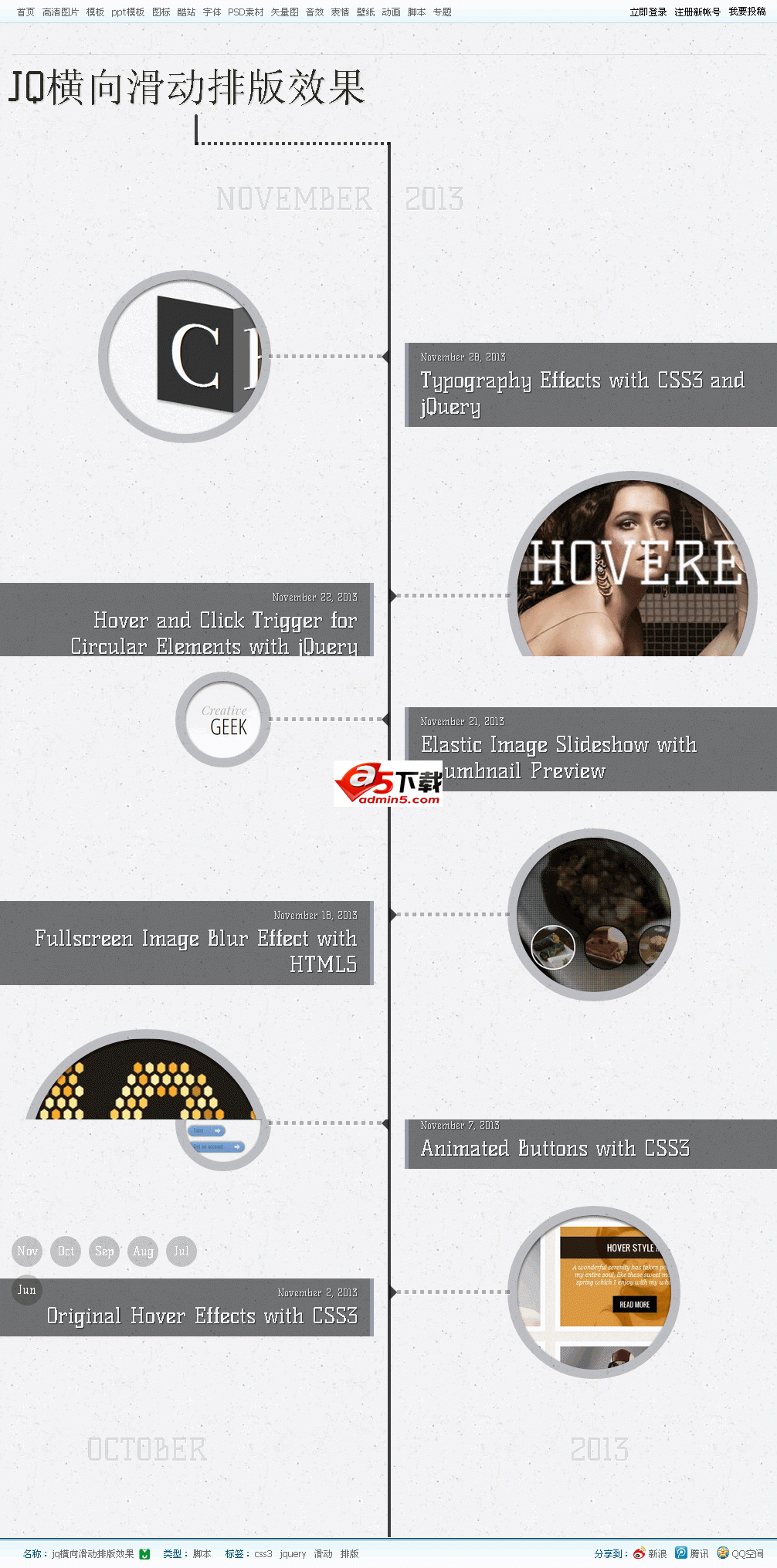 jq横向滑动排版特效图: 点击查看演示: