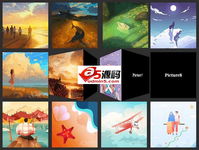 jQuery+CSS3悬停悬停翻转特效是一款网格列表图片悬停3D翻转动画效果代码。