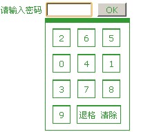 当前位置:下载COM绿色软件园 > JS特效 > JS常用代码 > 其它代码 > 仿农行的密码筐鼠标输入效果