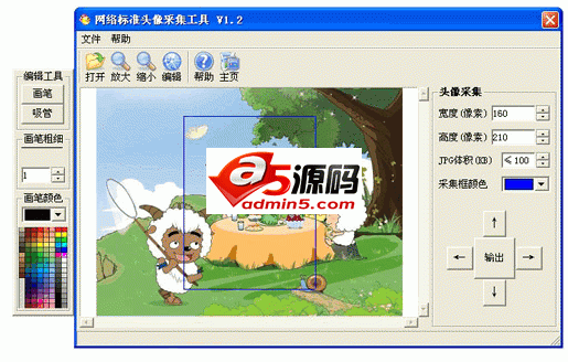 网络标准头像采集工具是一款简便好用的免费网络头像采集工具,免安装,双击即可运行。用于网上报名、论坛、QQ头像、网店头像等标准头像采集,能对图象进行简单的编辑修改,输出设定长宽的图片,如果输出JPG、JPEG图片,还可预先设置输出图片文件的体积。头像采集方式有两种:可打开现有图片文件采集,也可直接用本软件拍摄采集。
