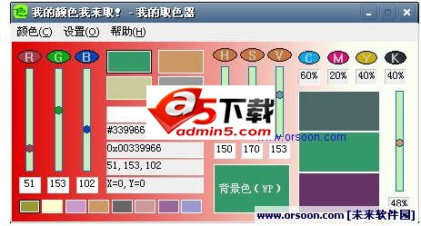 本软件是一个专门用于从屏幕任意处取色的多功能绿色软件,软件本身同时还具备调色功能,并且分别用网页颜色格式、RGB格式及十六进制等多种形式表示,支持颜色的获取、收藏、恢复、效果预览等功能,是颜色的完全“加工厂”,非常适合广大颜色爱好者、网页制作者等等需要对颜色进行调配的用户使用。目前,本软件正处于不断更新中,敬请关注。如果您在使用过程中有任何意见或建议,请及时和软件作者联系(Email地址:ExplorerSoft@163.com),不胜感激!
