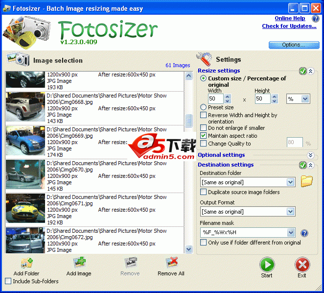 Fotosizer是一个批量改变图片大小的软件。如果有上传图片的习惯,更改图片大小、转换格式等的操作是不可免的,毕竟错误的格式和大小对于图片的读取速度会产生很大的影响。这时候你需要好用的软体替你做这些事情,用对工具就能事半功倍。Fotosizer是一款免费的软体,当然如果你愿意、觉得这软体不错的话也可以赞助他们。它提供了批次转换格式、缩放图片保持比例、旋转图片、黑白和负片效果、更改档名的功能,介面相当简洁大方,非常直觉的操作介面,并且提供繁体中文与多国语言。